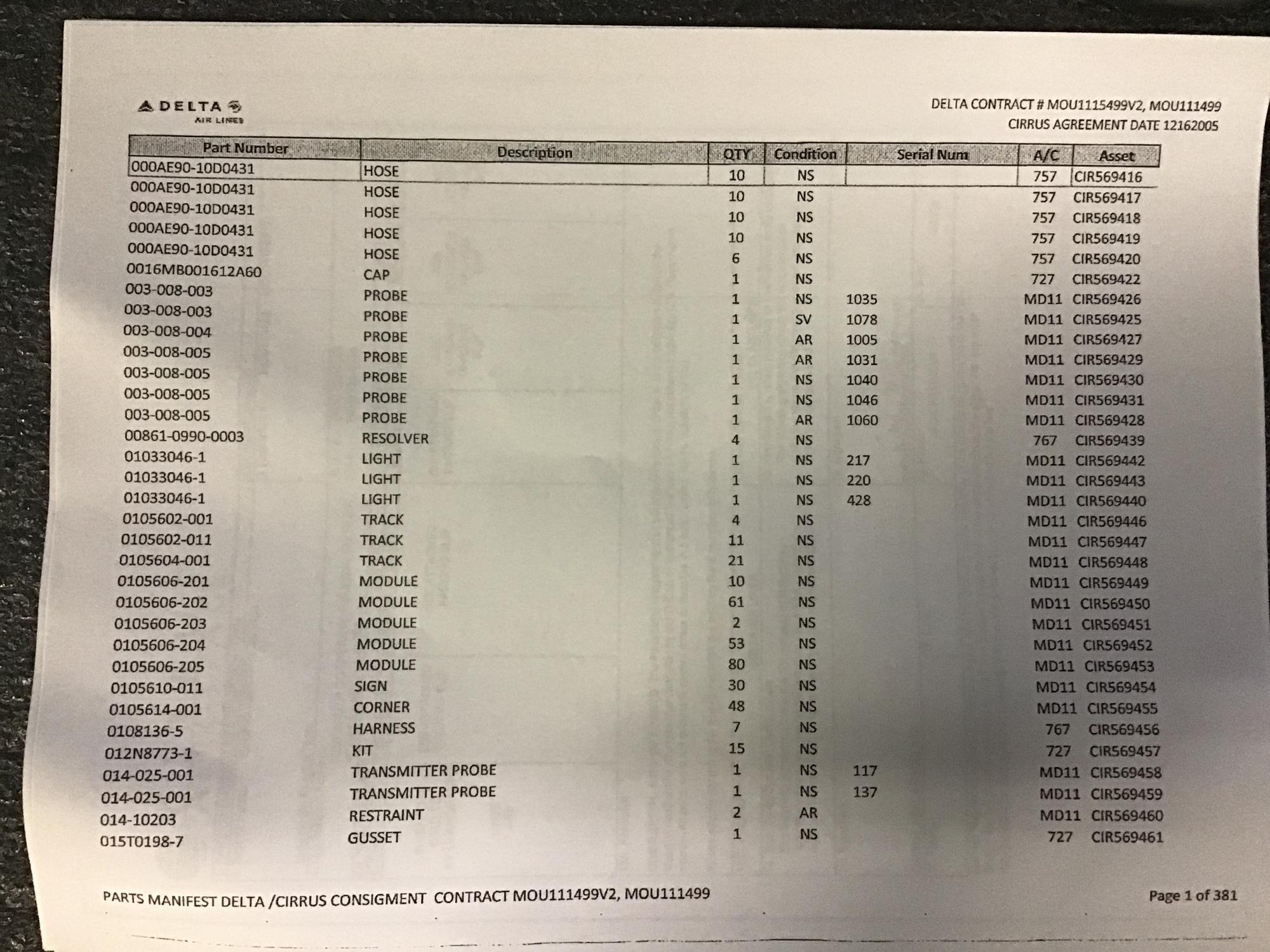 Lot # | Part # | Serial # | Description | Qty | CC | App | Source Code | Stock ID | Trace Docs |