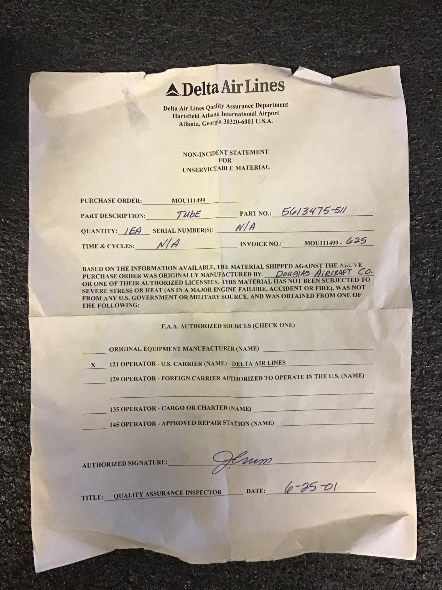 271 | 5613475-511 | TUBE | 1 | AR | B737 | CDLT1-E | SID11885 | No File - Check Pics | |