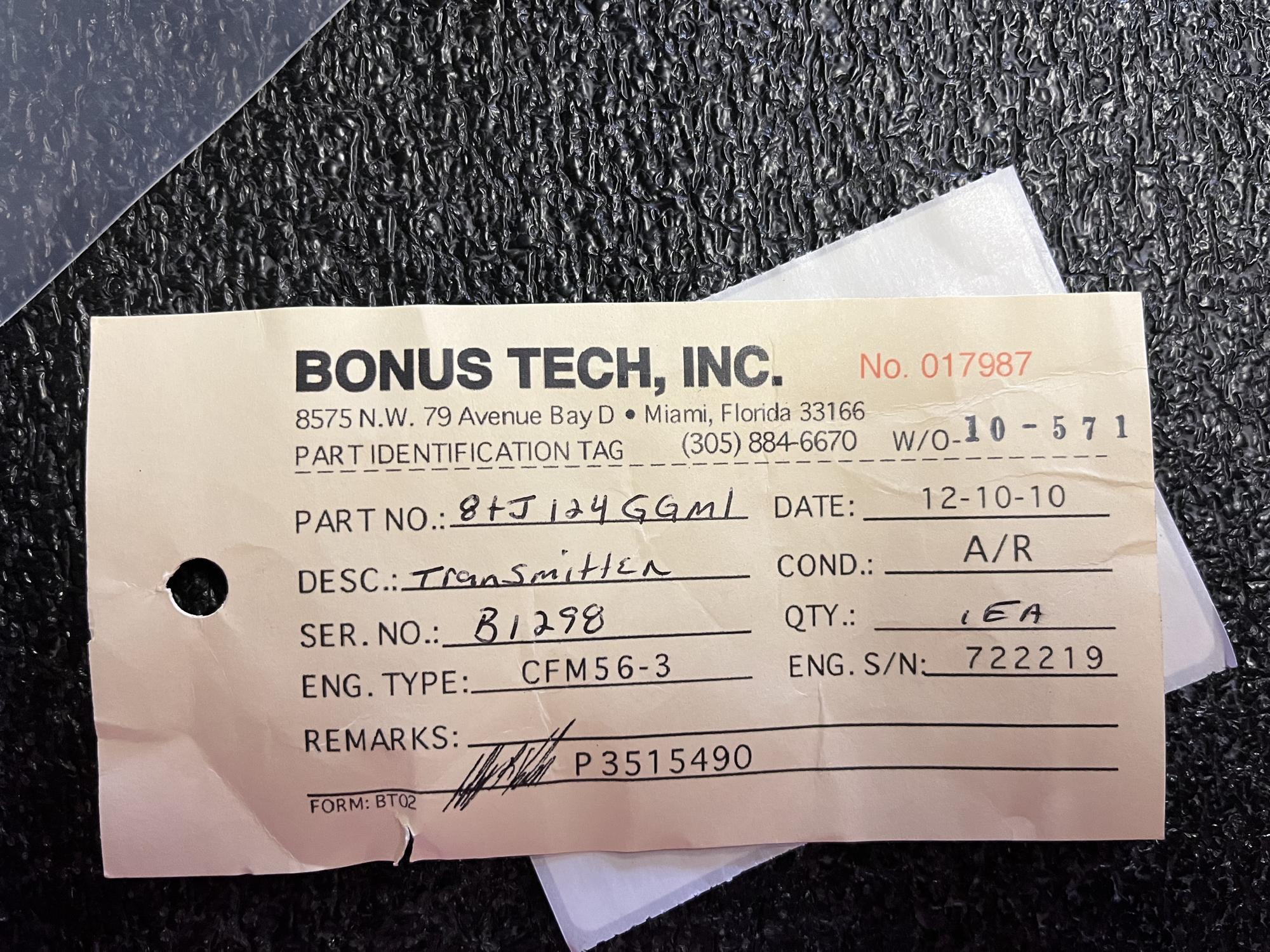 330 | 8TJ124GGM1 | B1298 | TRANSMITTER ASSY, FUEL FLOW INDICATING, V97424 | 1 | AR | CFM56 | E722219 | SID15628 | View |