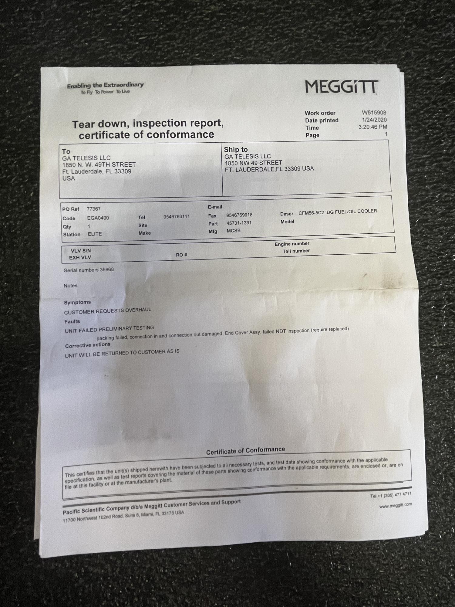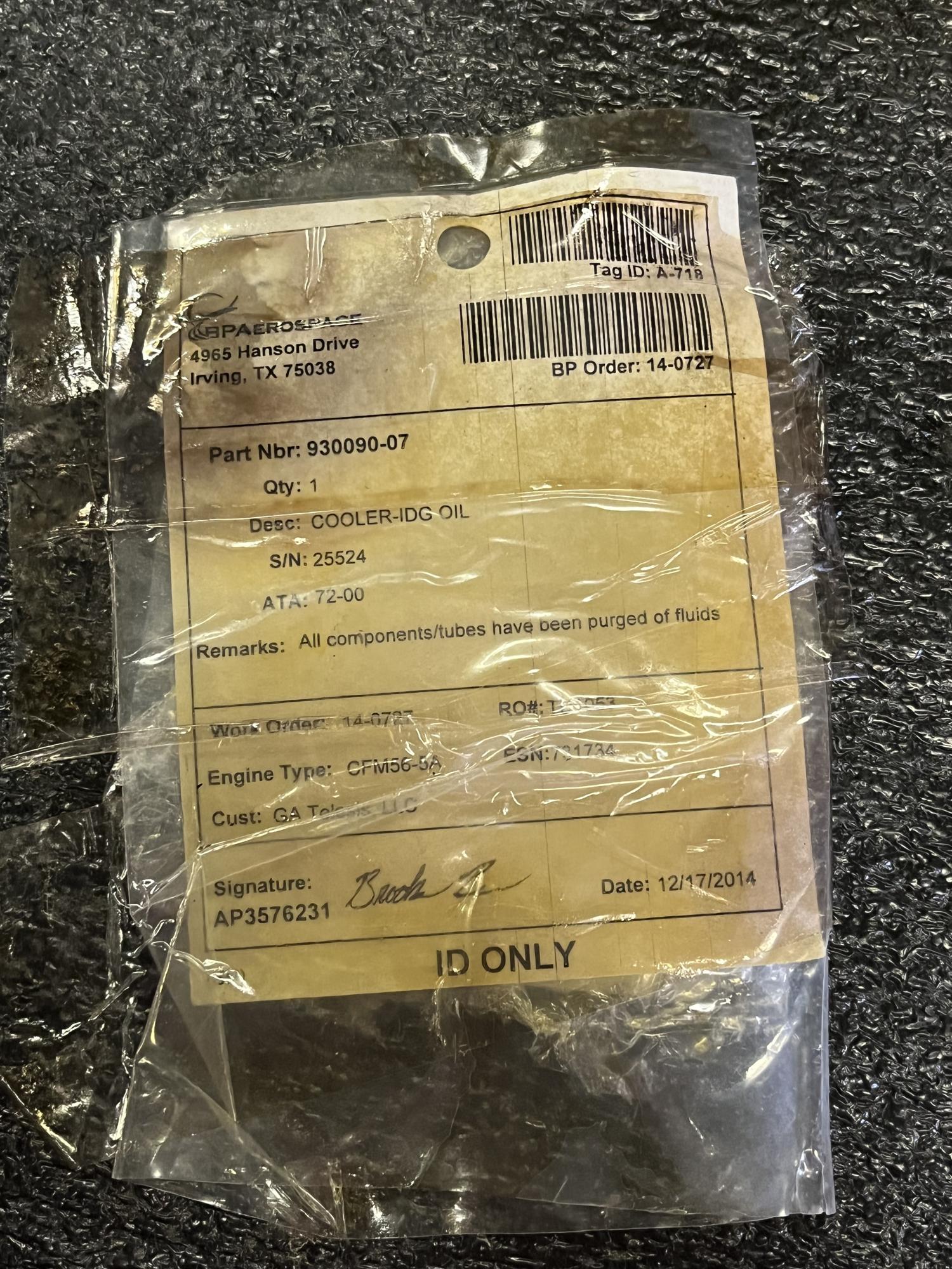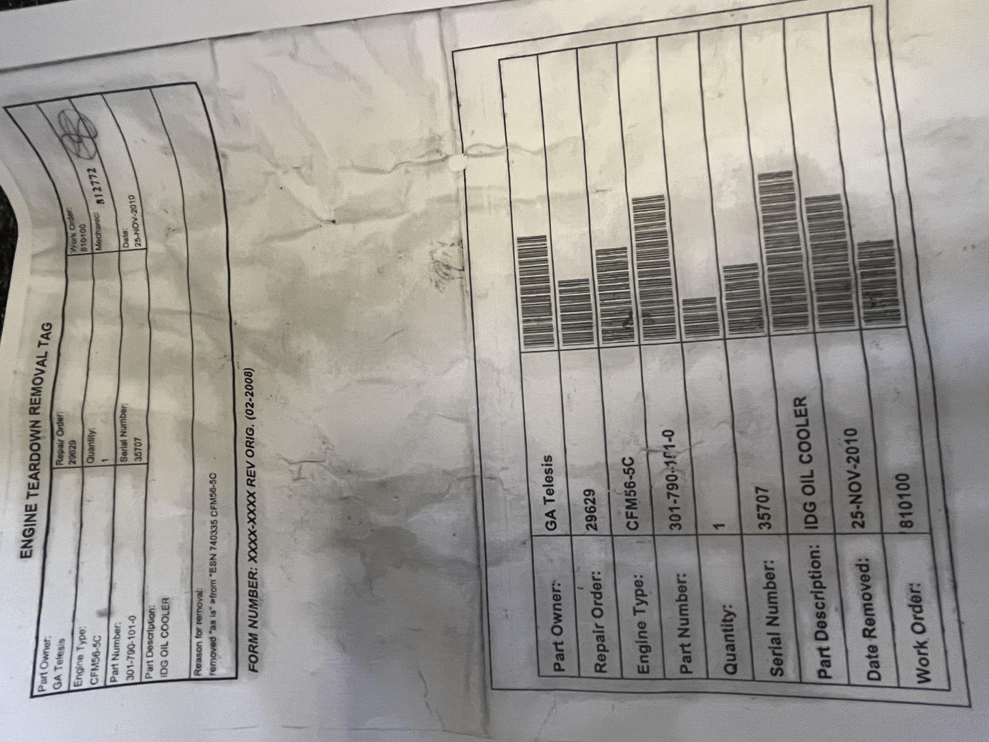 | 334 | 9300-90-07 | 25455 | IDG OIL COOLER | 1 | AR | CFM56 | E731487 | SID16305 | View |