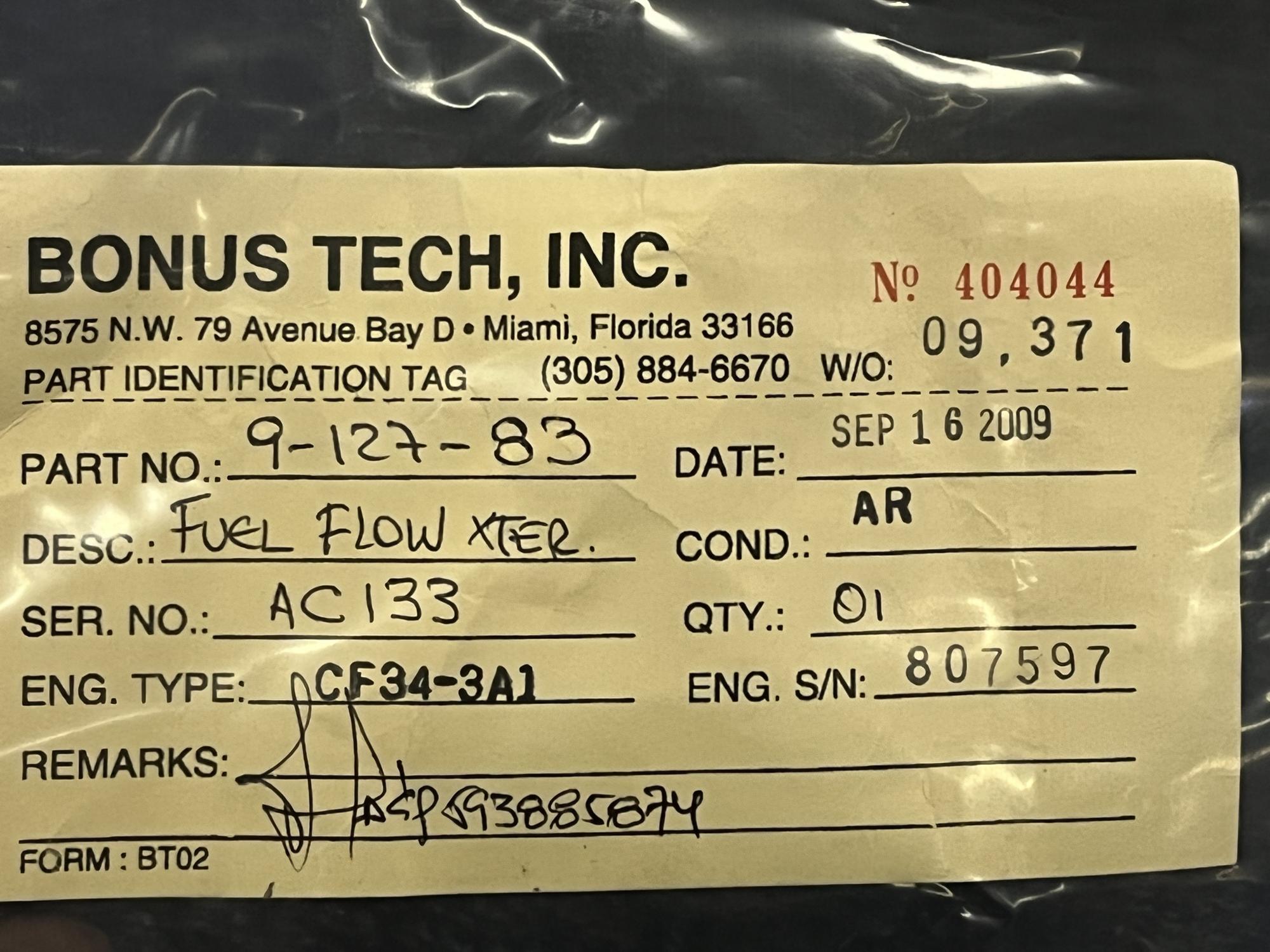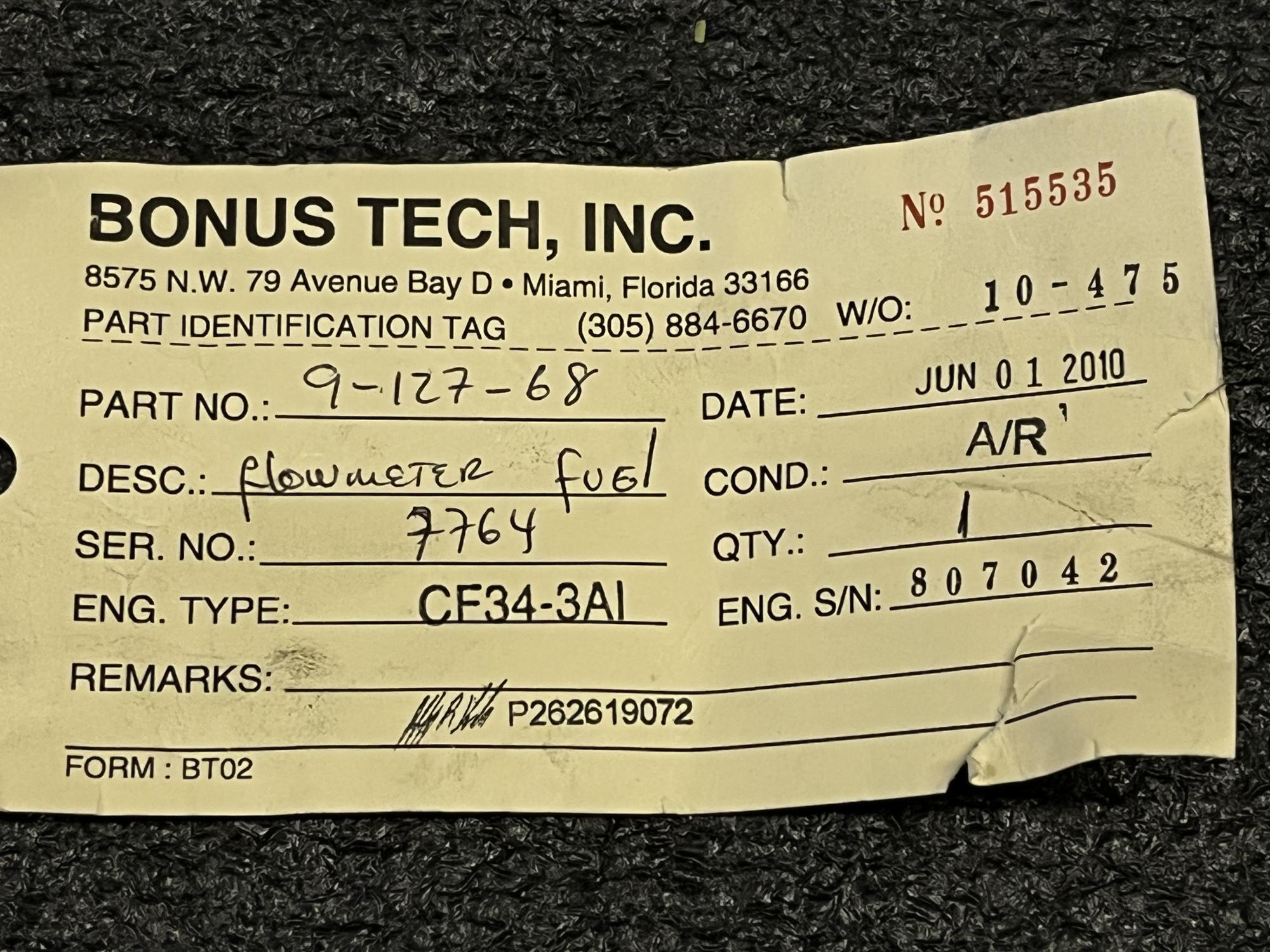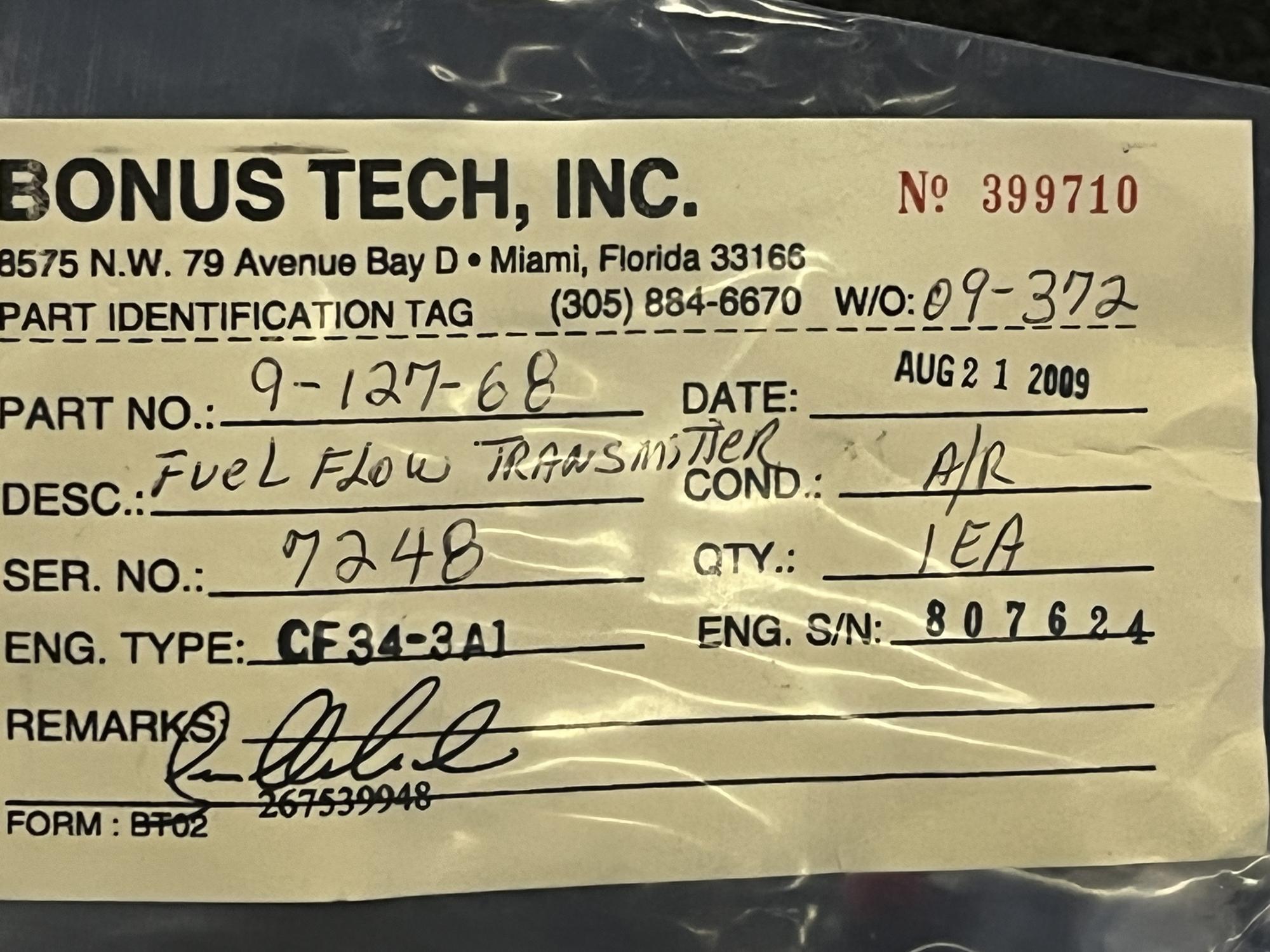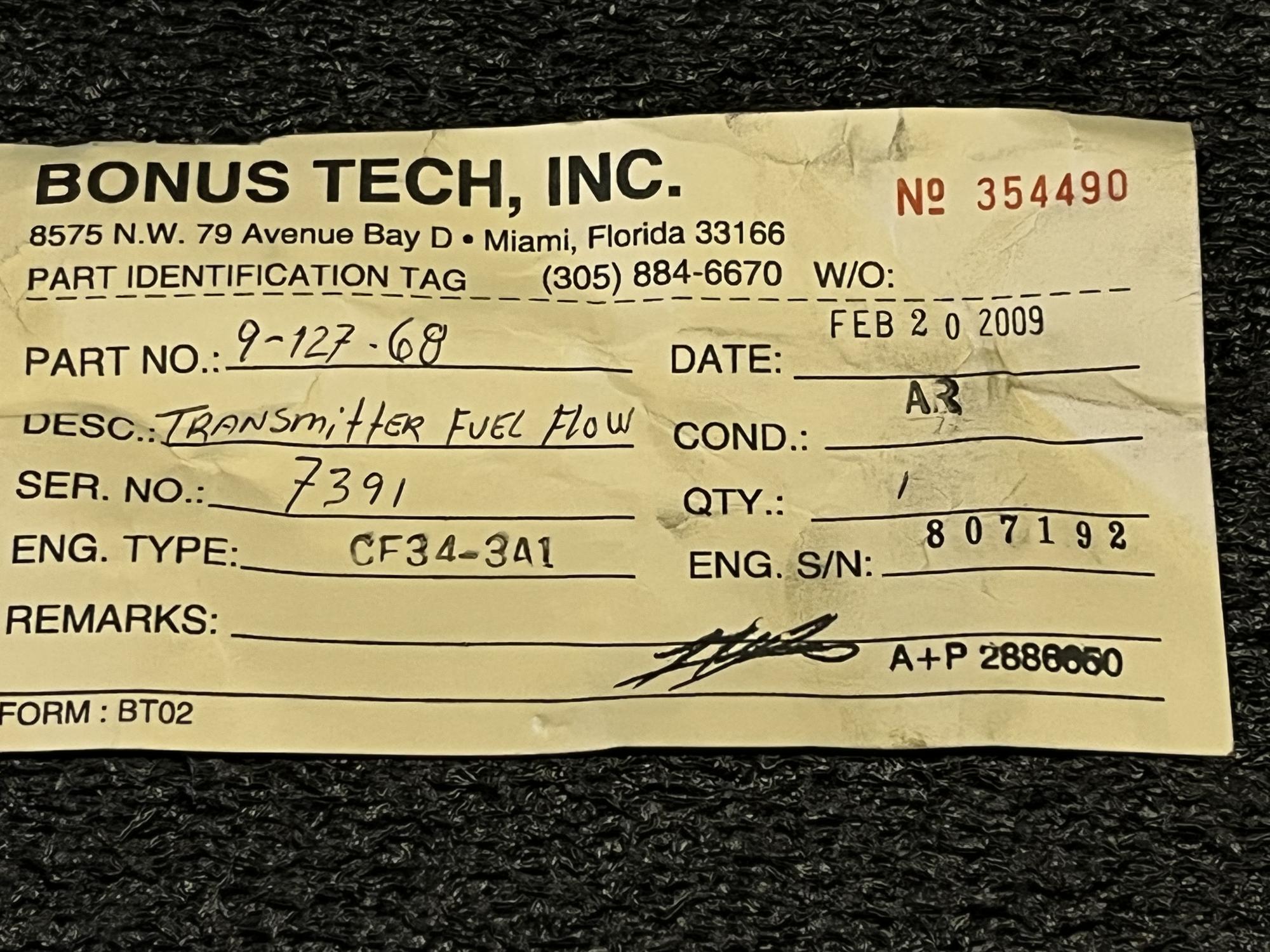 | 354 | 9-127-68 | 7764 | TRANSMITTER, FUEL FLOW | 1 | AR | CF34 | E807042 | SID15801 | View |