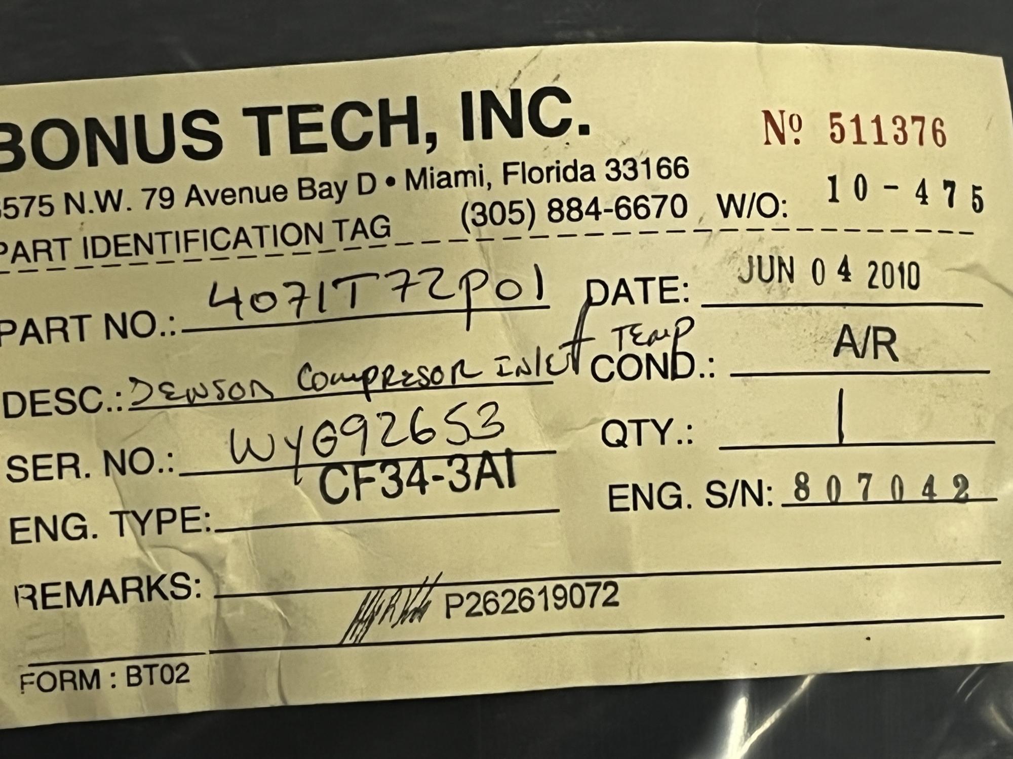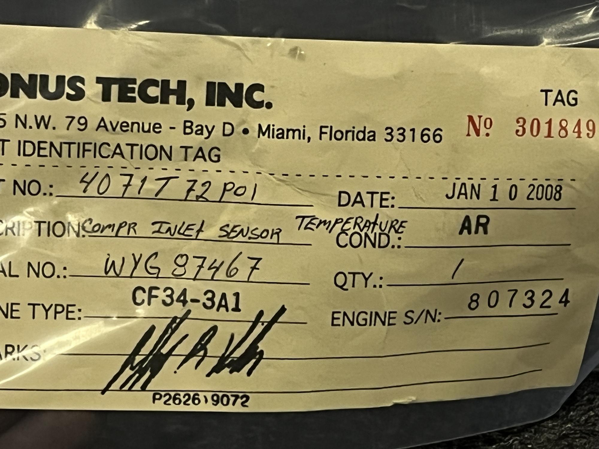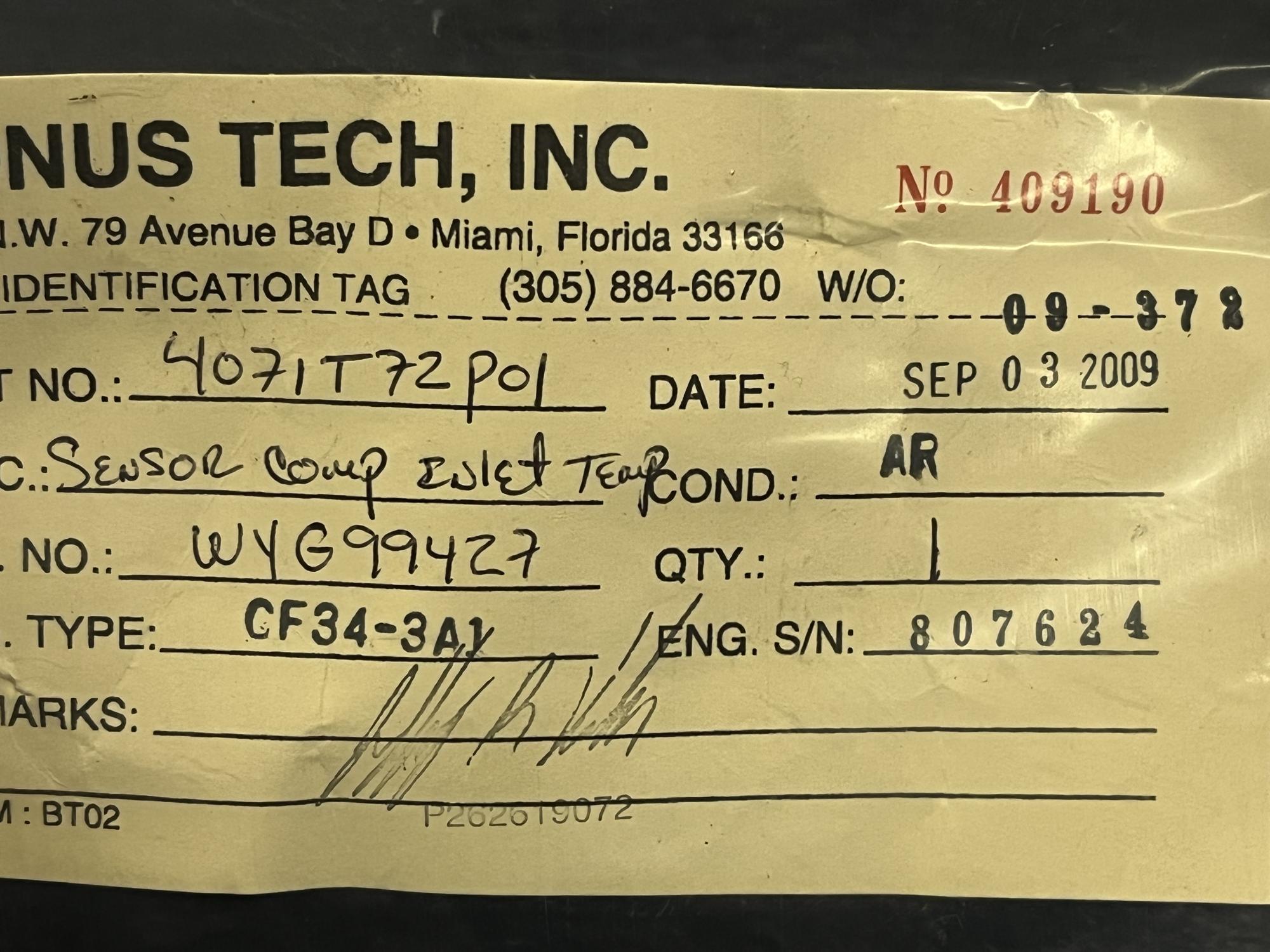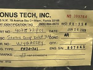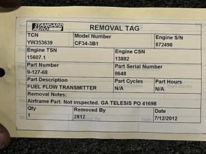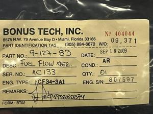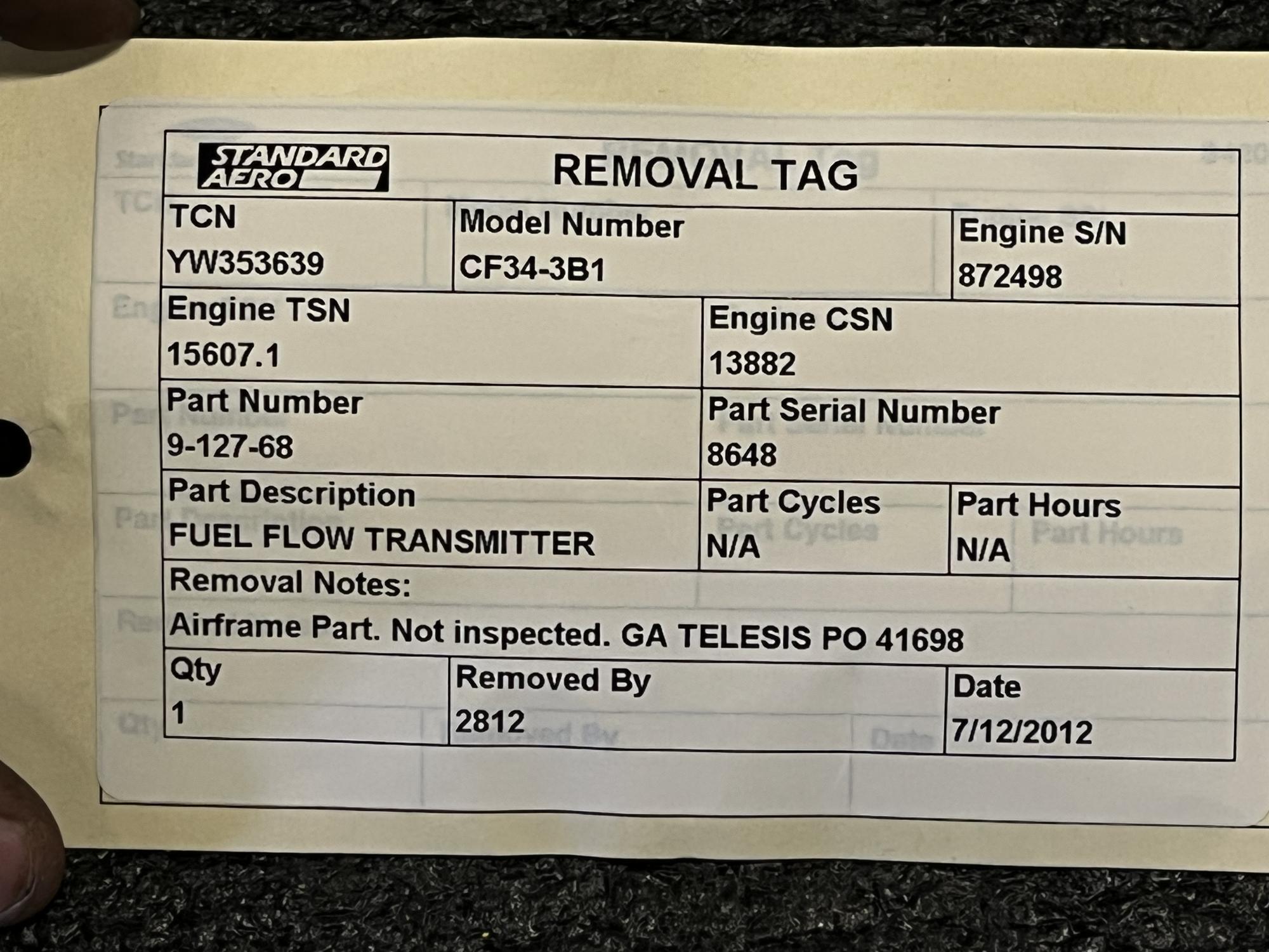 | 354 | 9-127-68 | 7764 | TRANSMITTER, FUEL FLOW | 1 | AR | CF34 | E807042 | SID15801 | View |