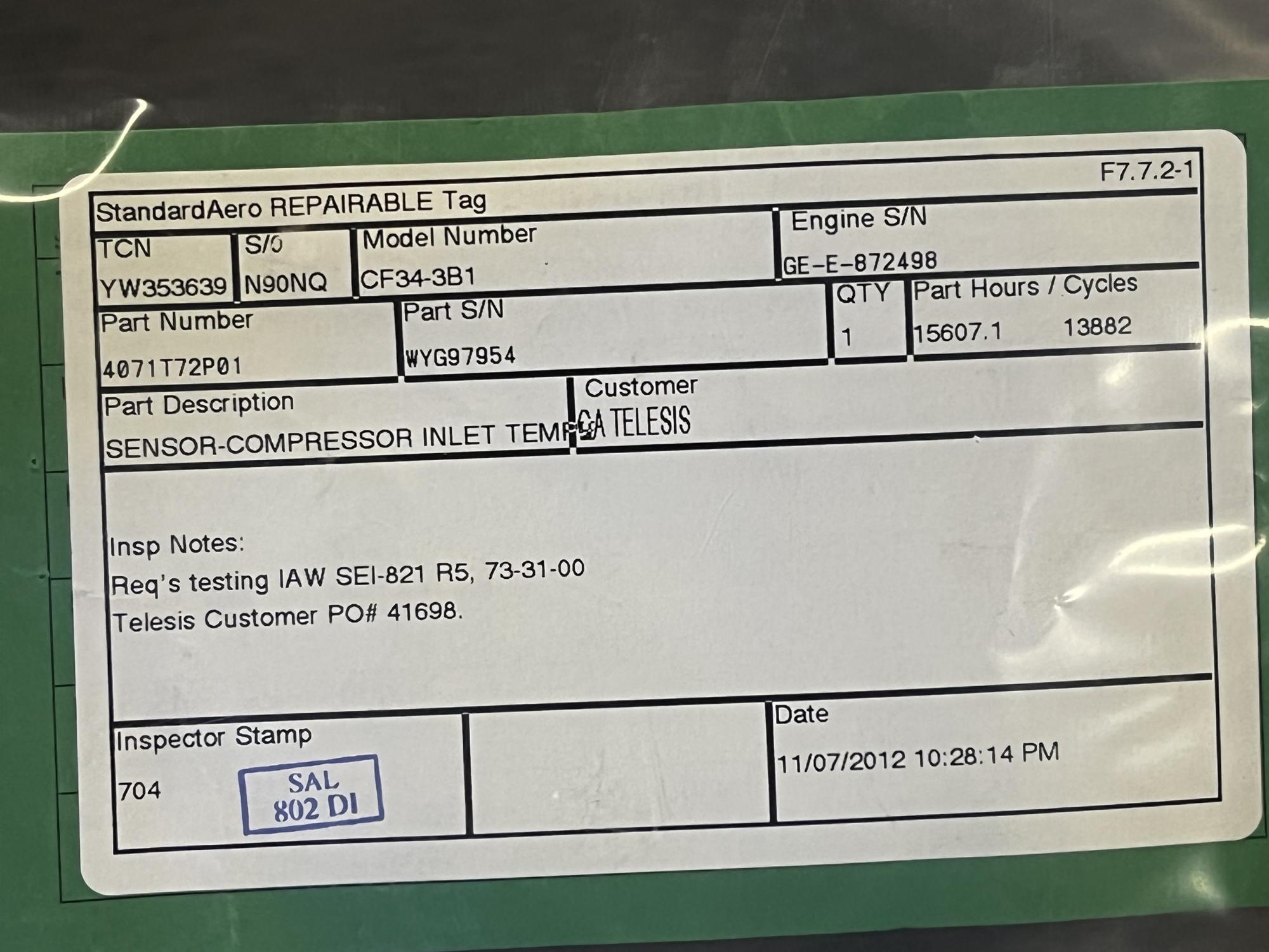 | 354 | 9-127-68 | 7391 | TRANSMITTER, FUEL FLOW | 1 | AR | CF34 | E807192 | SID15800 | View |