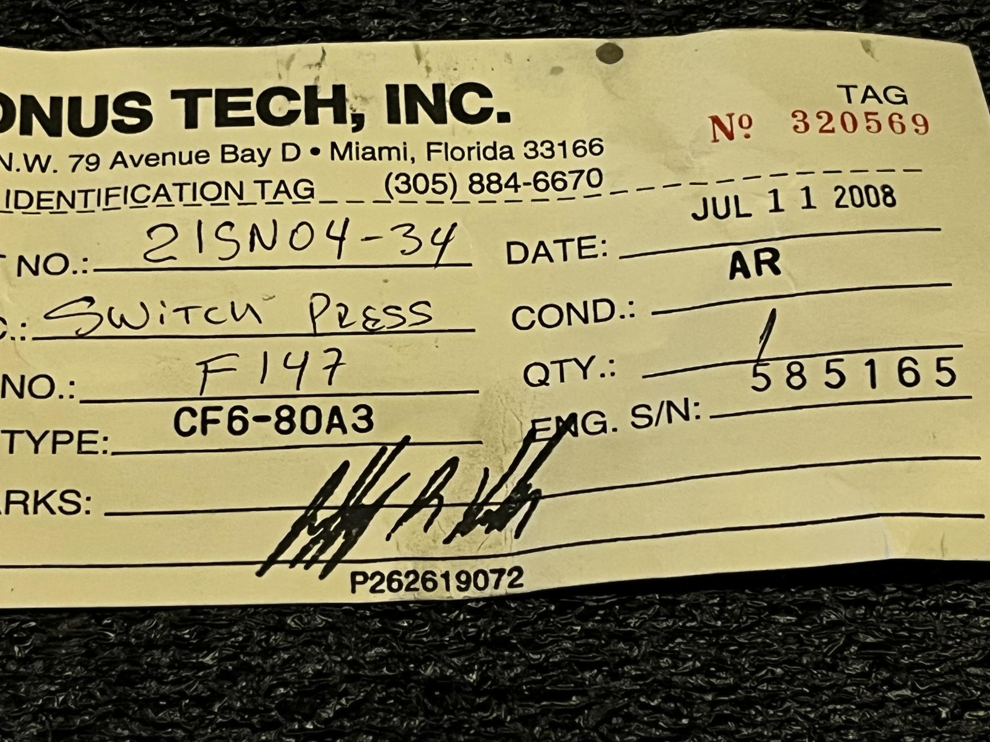 | 354 | 21SN04-34 | F147 | PRESS - SWITCH | 1 | AR | CF6 | E585165 | SID02150 | View |
