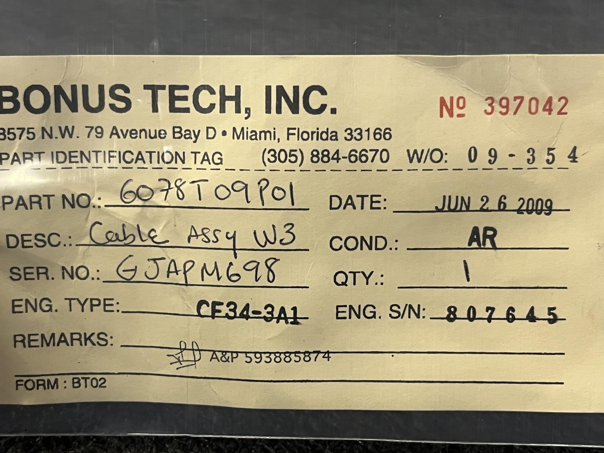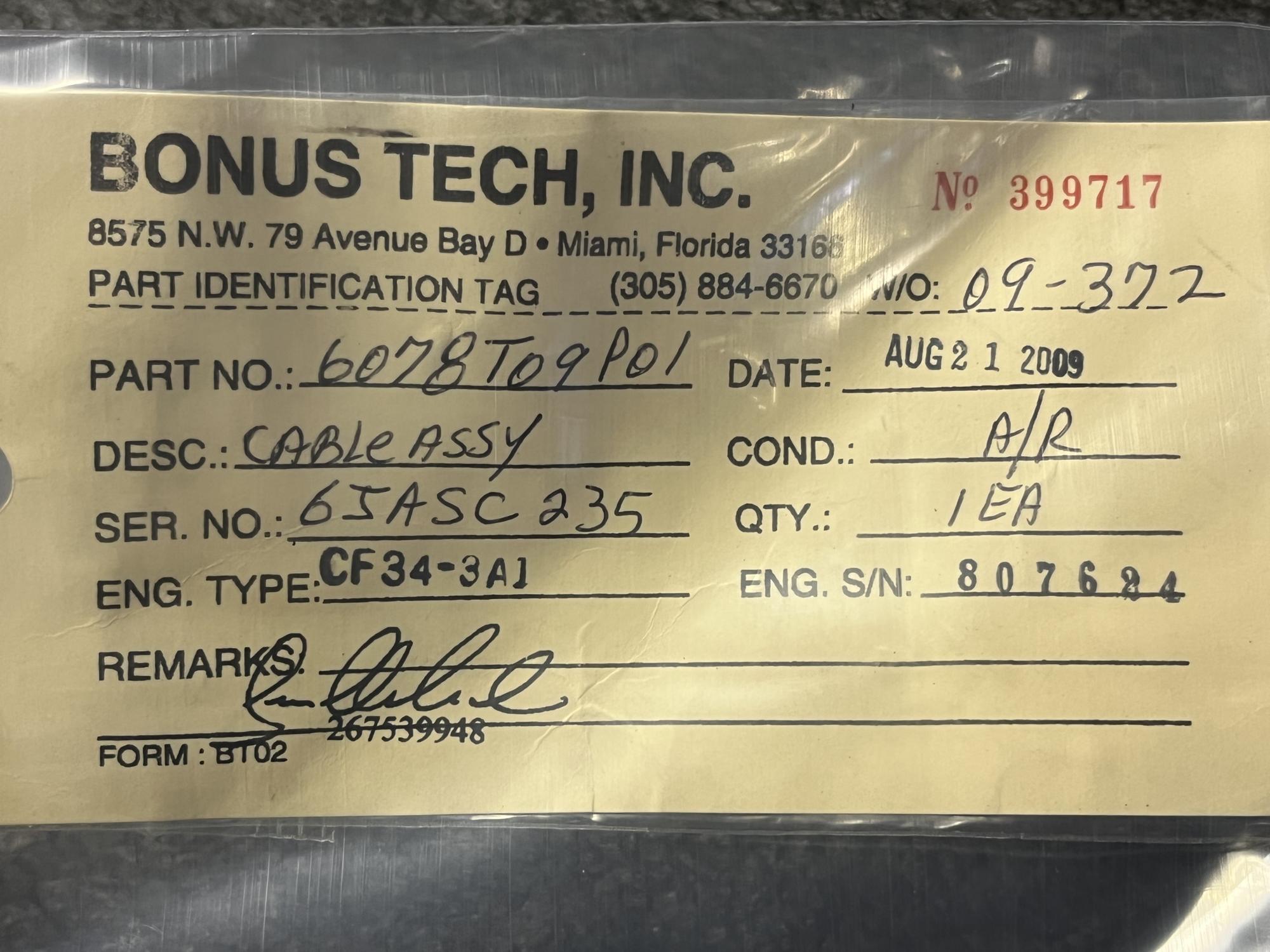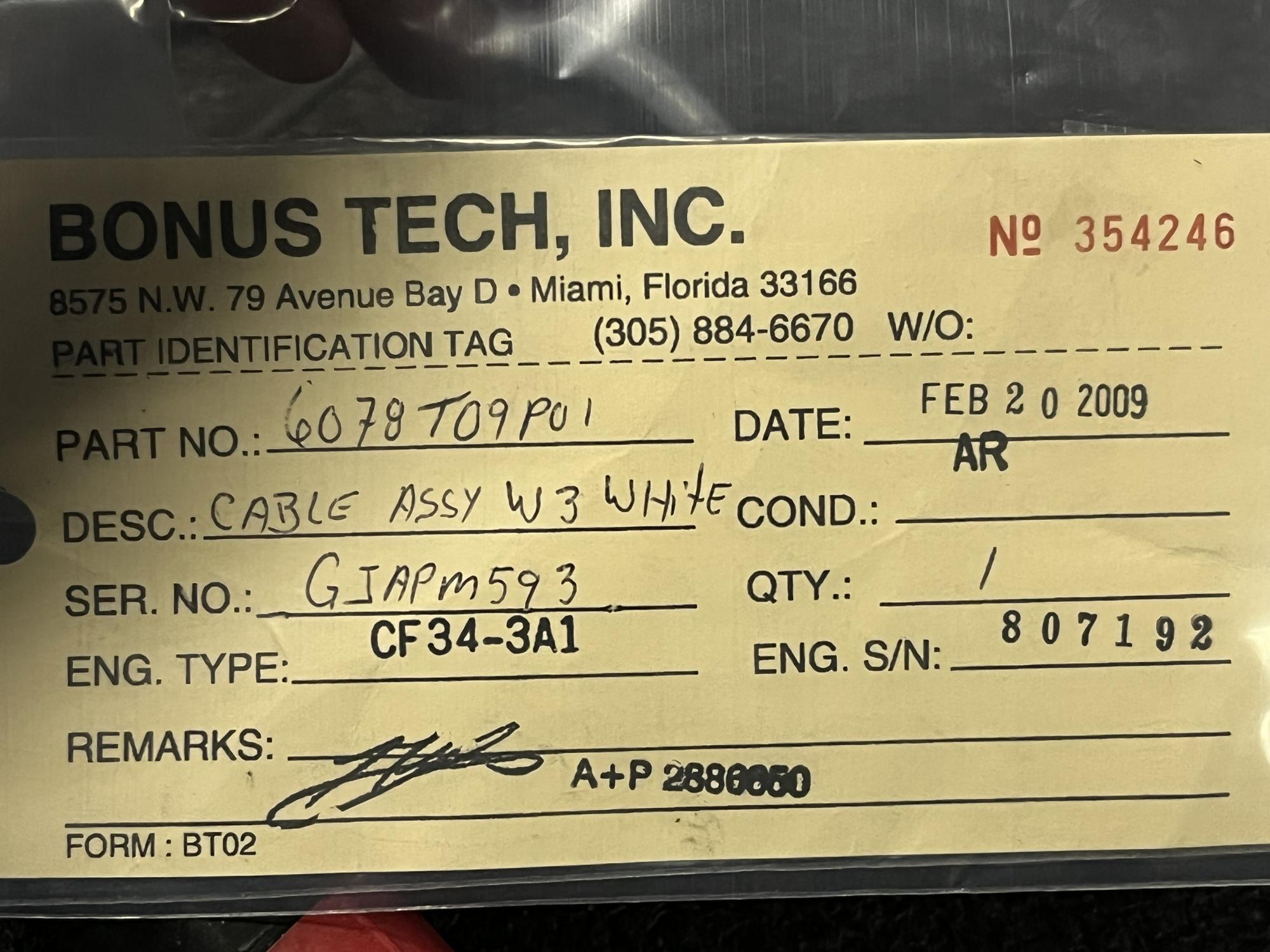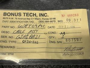 359 | 6078T09P01 | GJASBB21 | CABLE | 1 | AR | CF34 | E807597 | SID13078 | View |