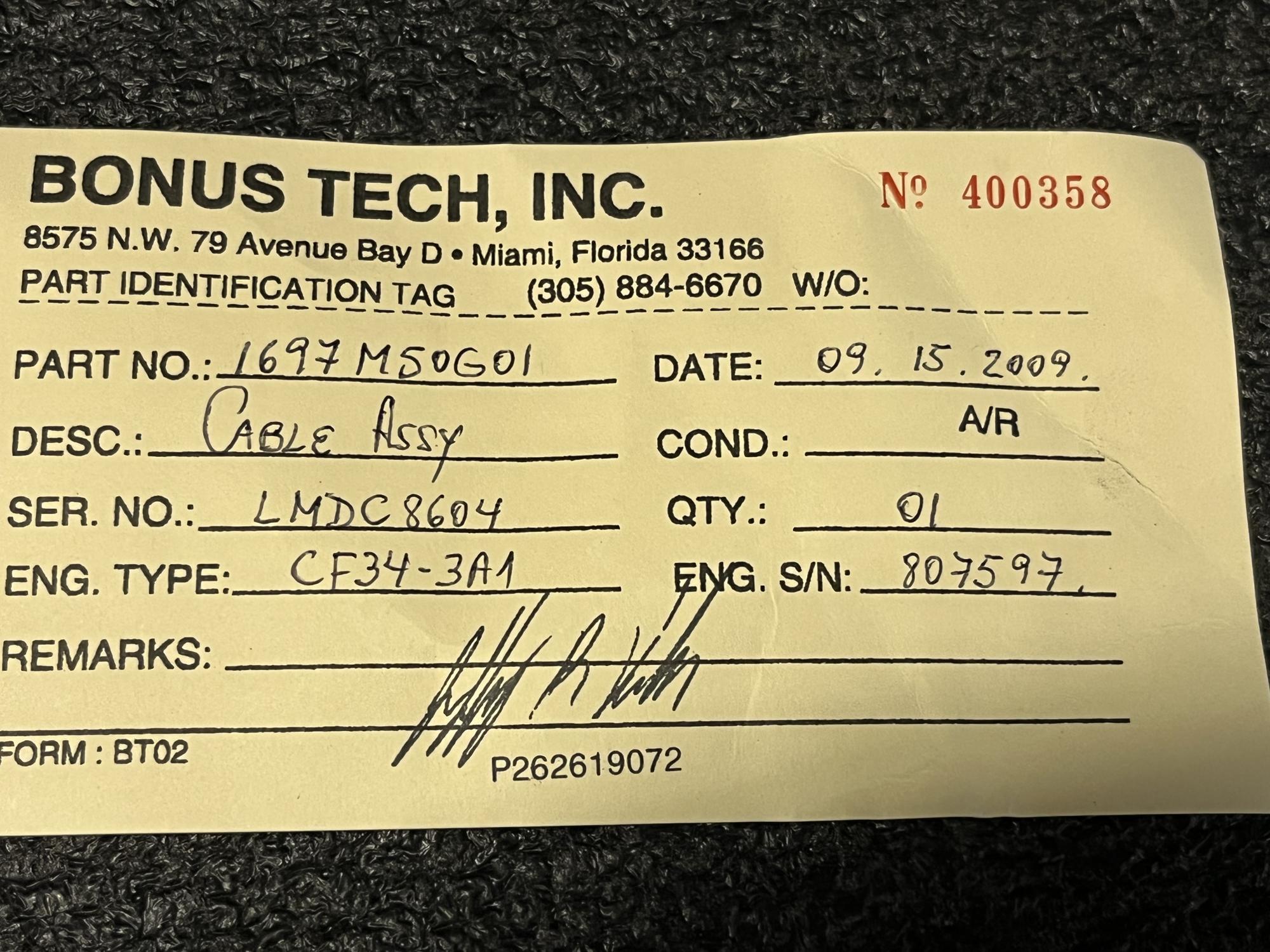 359 | 1697M50G01 | LMDC8604 | CABLE | 1 | AR | CF34 | E807597 | SID01377 | View |