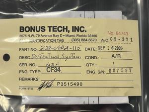 359 | 228-04021-115 | NSN123293 | DETECTION SYSTEM, FIRE | 1 | AR | CF34 | E807597 | SID02383 | View |