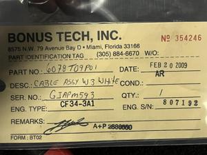 359 | 6078T09P01 | GJARR195 | CABLE | 1 | AR | CF34 | E807324 | SID13074 | View |