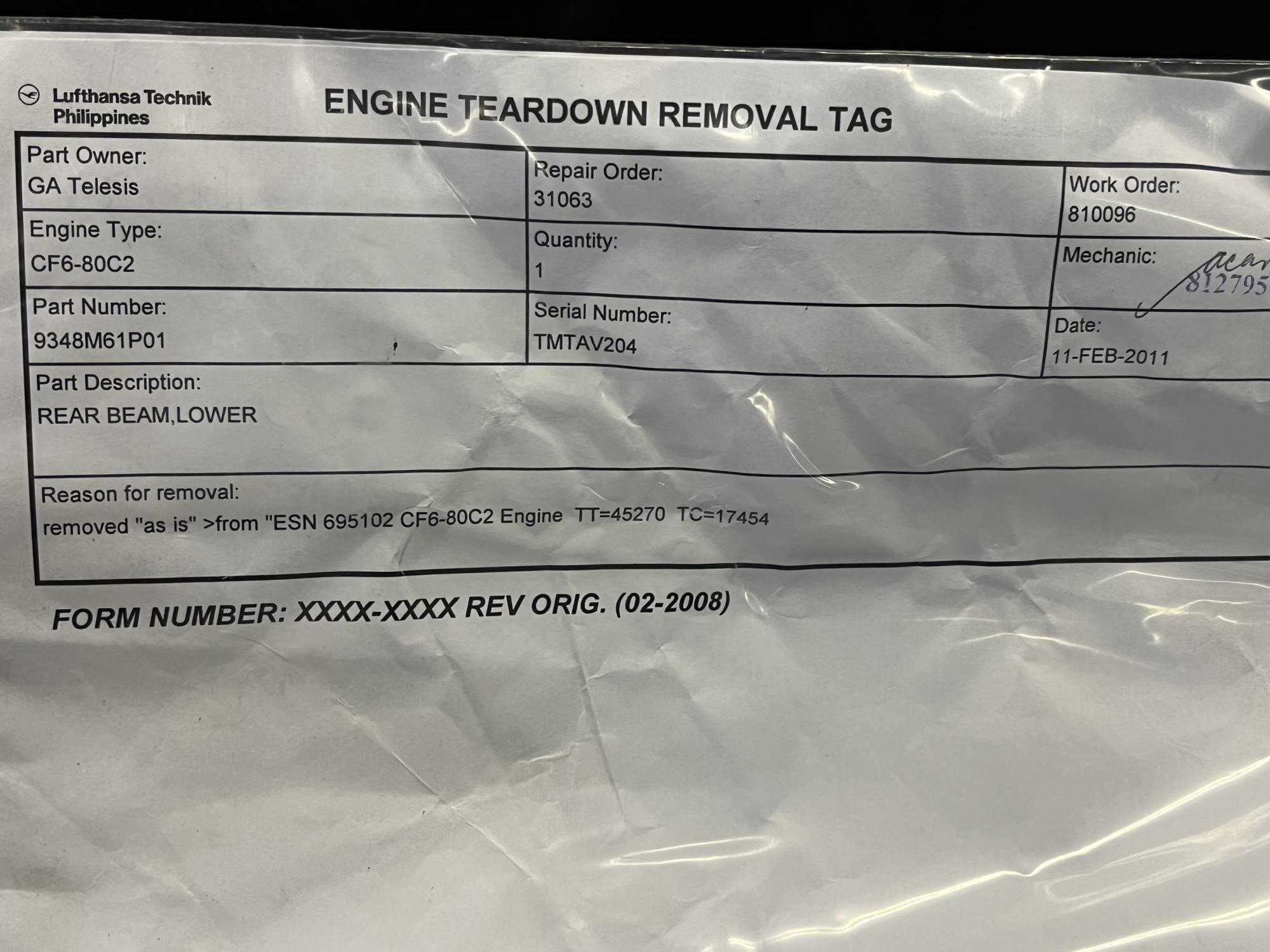 370 | 9348M61P01 | TMTAV204 | BEAM, LOWER, MOUNT ENGINE AFT | 1 | AR | CF6 | E695102 | SID16470 | View |