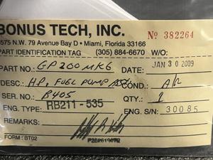 380 | GP200MK6 | B405 | HP FUEL PUMP ASSY | 1 | AR | RB211 | E30085ART | SID19349 | View |