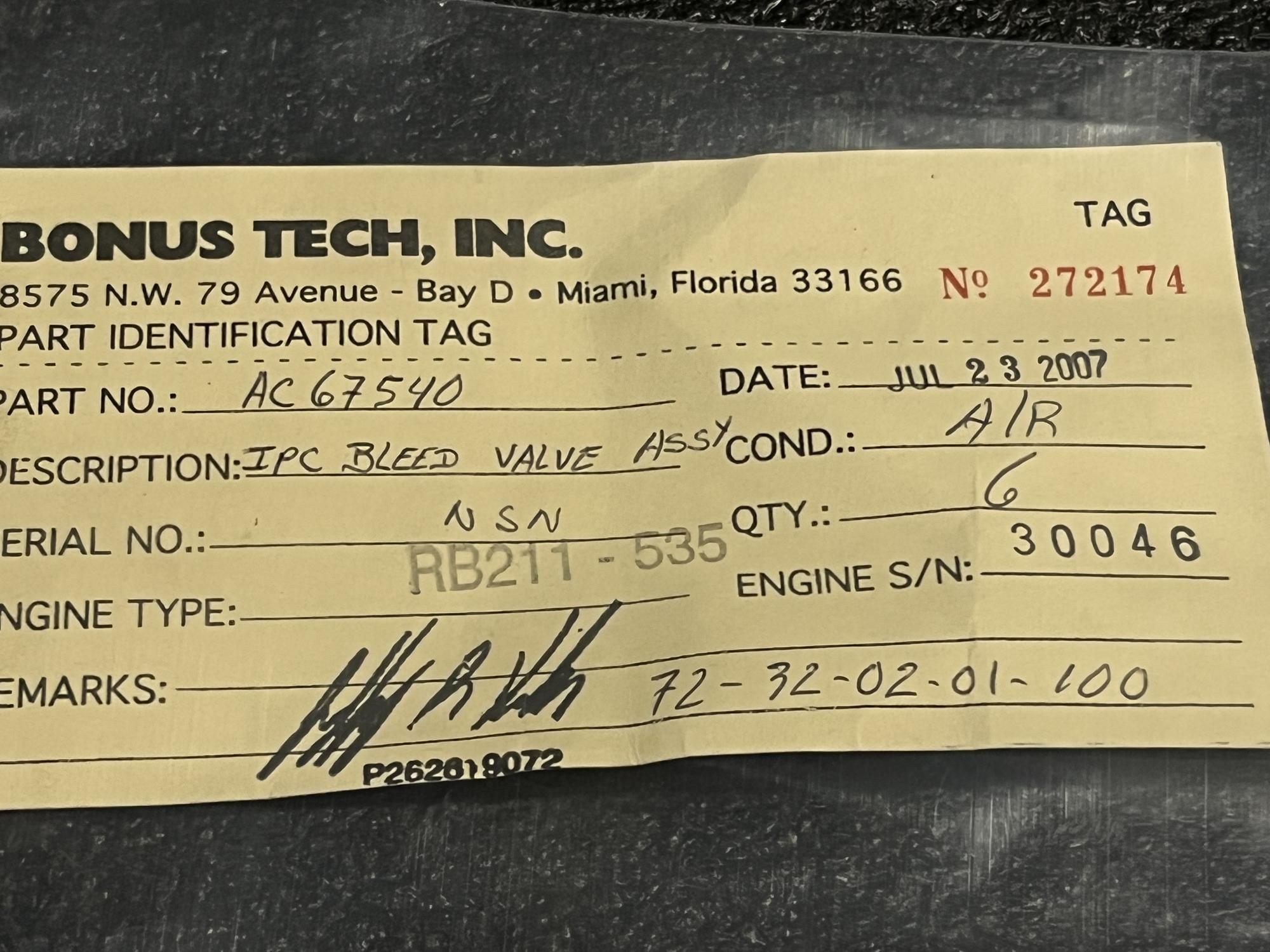 | 383 | AC67540 | IPC BLEED VALVE | 6 | AR | RB211 | E30046ART | SID17842 | View | |